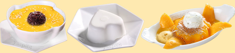 精致糕点类:椰汁紫米软膏 ★芒果布甸 ★芒果班戟 ★香蕉班戟 ★榴莲班戟 ★荔茸西米布甸
