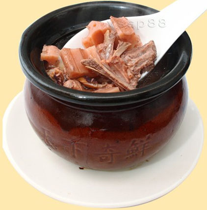 江西,简称赣,赣菜讲究原汁原味,其中瓦罐煨汤,是赣菜的代表,至今已有一千多年的历史。瓦罐汤,完全采用民间传统煨汤方法,以瓦罐为器,精配食物加以天然矿泉水为原料,以硬质木炭火恒温传统式六面受热,煨制达七小时以上。终于演译成倍具民间传统特色又合乎现代人口味的美食。瓦罐之妙处在于土质陶器,秉阴阳之性含五行之功效,久煨之下原料鲜味及营养成分充分溶解于汤中,其味鲜香淳浓,食后令人久而难忘。