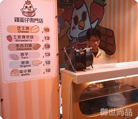 鸡蛋仔: 原味鸡蛋仔 ★芝麻花生朱古力鸡蛋仔 ★芝士鸡蛋仔 ★朱古力鸡蛋仔 ★双拼鸡蛋仔 ★草莓鸡蛋仔 ★椰丝鸡蛋仔 ★海苔鸡蛋仔 ★香葱鸡蛋仔 ★火腿玉米鸡蛋仔等。 |
