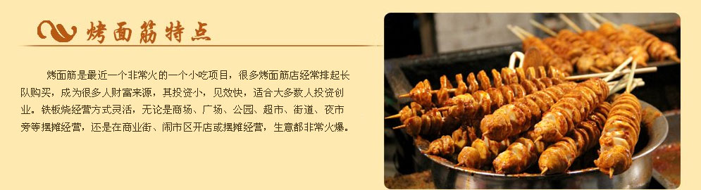 学习烤面筋技术,一天即可掌握,无论您以前有没有经验,是否从事过小吃业,男女老少1~2人均可轻松操作。投资设备用具总成本200~500元即可。最佳经营地点是:超市、网吧、小区、商业区、步行街、学校、大排档、夜市等人口流量较大的地方。请相信,这是特色休闲小吃中又疯狂火爆项目,善于把握机会的生意人绝不会错失良机!