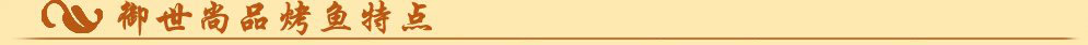 御世尚品烤鱼以先烤后炖结合的两种不同料理,既具有“味不外泄”烤制优势、又不乏“味在汤里、汤在鱼中”的炖制趣味。其取料之常见而不离精细,工艺之讲究而不失通俗,味道之浓厚而不缺别致;色泽与众不同而不乏精美。御世尚品烤鱼以其特殊的制造工序和独特的配料而成为了很多酒店和餐馆的招牌菜,特色菜。