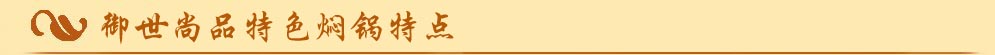潮流新颖——御世尚品、新风尚、新感觉、新味道,御世尚品特色焖锅,不拘泥于传统,与时俱进、继往开来,酿制新配方、应用新工具、创造新吃法,把焖锅与涮、汤结合起来,顺应了新时代,创造了新模式,满足了人们新吃法,开拓了新市场。