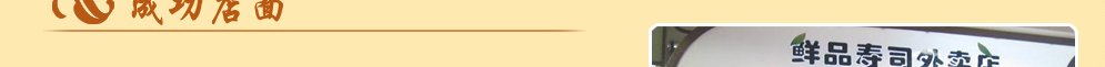 3、较成熟的社区附近 购物中心和商业步行街,因为寿司店的主要消费人群为12—25岁的年轻人,占总客源的67.2%此年龄阶段的年轻人都较喜欢活跃在此。 选好店址基本上决定着投资的成败,例如天河城六楼“友和寿司”,曾经创下单天营业额3万元的纪录“友和”在价格、出品、服务、装修上都和其它同行大同小异,为什么能创下如此高的营业额?所占的优势是什么?它的优势就在于店址选得好。