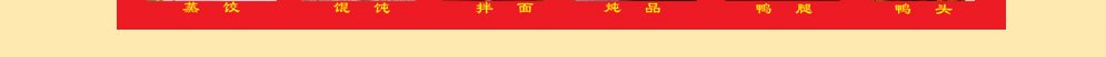 云吞水饺类: 排骨云吞 ★牛肉云吞 ★乌鸡云吞 ★猪心云吞 ★猪腩云吞 ★猪肚云吞 ★水鸭云吞 ★鸽子云吞 ★腰尾云吞 ★牛腩云吞 ★一品蒸饺 ★上汤馄饨 ★上汤水饺 ★香拌水饺 ★香拌云吞 ★炸水饺等