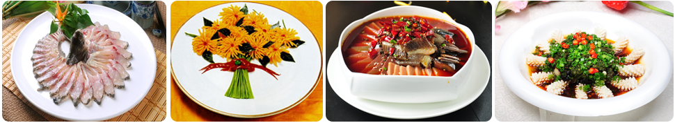 果蔬串花 ★果蔬雕刻 ★器皿围边 ★餐具装饰 ★菜肴搭配等